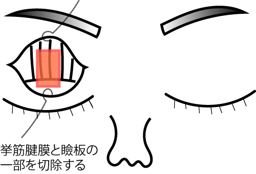 眼瞼挙筋(拳筋腱膜、ミューラー筋)を出し、この部分を
