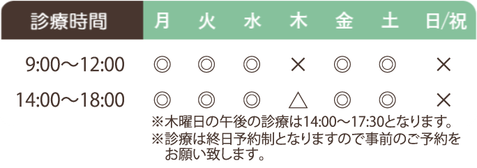 2019年8月11日(日)~8月14日(水)まで夏期休暇のため休診とさせて頂きます。